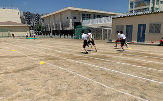 男子は50メートル走のタイムを計っています。