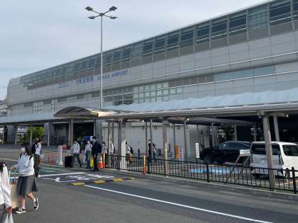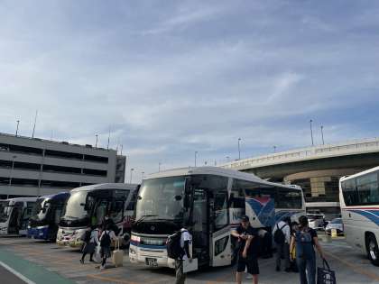 飛行機に少し遅れがありましたが、無事に伊丹空港に到着し、予定通りバスで出発しました。