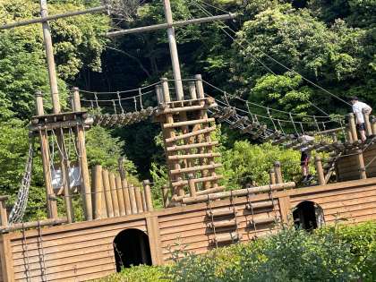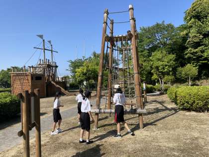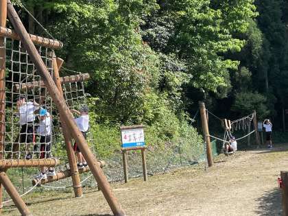 1年3組は、カッター訓練の後は、アスレチックを楽しんでいます。