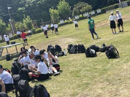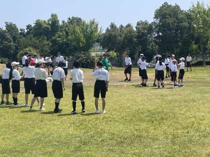 1年2組、3つ目の活動は芝生広場で「ドッヂボール」です。