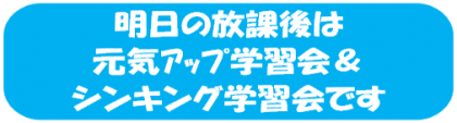 明日の放課後に『元気アップ学習会』と、今年度より、主に3年生の数学の授業のサポートをしてくださっている学びサポーターさんによる『第1回シンキング学習会』を開催いたします。
