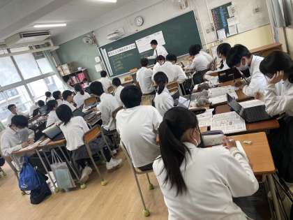 本日3時間目に、3年2組の生徒を対象に教育実習生による技術・家庭科の研究授業を行いました。