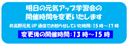 体育大会の予行練習で下校時間が早まるため、学習会の開催時間を変更いたします。