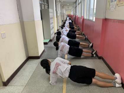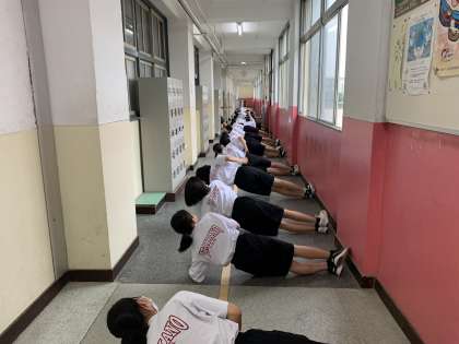 今日は、あいにくの雨ですが、廊下を使って筋トレをしているところを、お邪魔させていただきました。