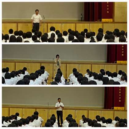 〇4月の始業式の際に「今年度の目標設定をして頑張りましょう」と話をしました。1学期を振り返り、努力できたところは継続し、2学期に向けて改善すべきところ改善していきましょう。みなさんには力があります。一緒に頑張りましょう。