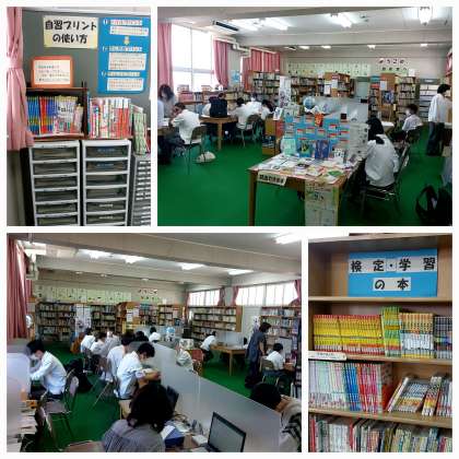 図書室には、検定本や学習参考書、自習用プリントなどが置かれています。学習の際には、ぜひご活用ください。