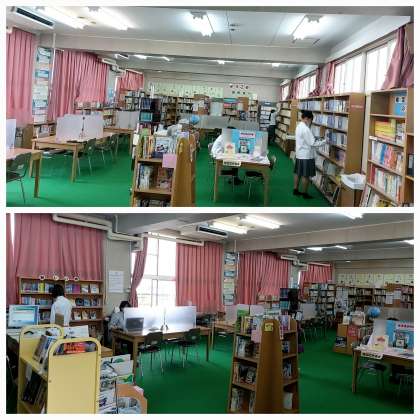 図書委員さんが図書館開放をしてくれています。本を読みたい人、借りたい人はもちろん、ホッと一息つきたい人も、ぜひご来館ください。