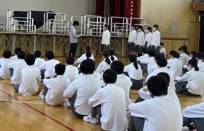 〇先日の家庭科の授業は担当教員が変わって初の授業でしたが、授業後半に実施された確認テストは、皆大変良い結果でした。皆さんには授業をよく聞き、取り組む力を持っていることがあらためてわかりました。今後は、クラブの部長団もメインが3年生から2年生になります。学校での活動を積極的に頑張ってください。