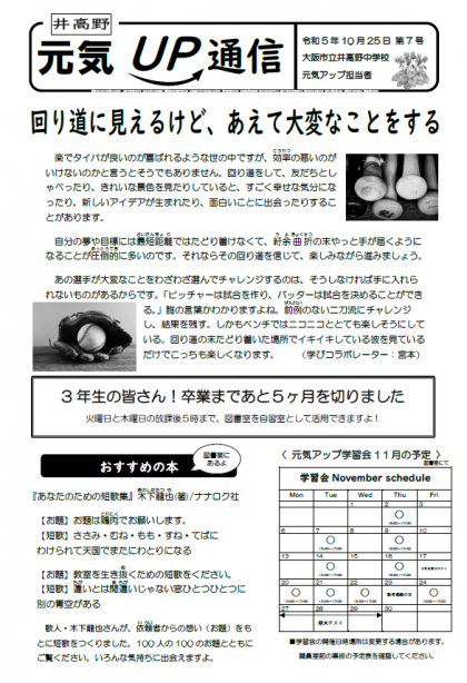 本日『元気UP通信 第7号』を配布しました。11月の学習会の予定も載っています。