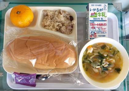 今日は、焼き豚、金時豆、しめじの入った「金時豆の中華おこわ」です。おこわには、独特のもちもちとした食感と甘みがあります。