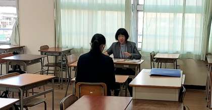 本日放課後に、英検の二次試験対策講座を実施しました。本番の面接を想定して、入室の仕方や質問への答え方を練習しました。