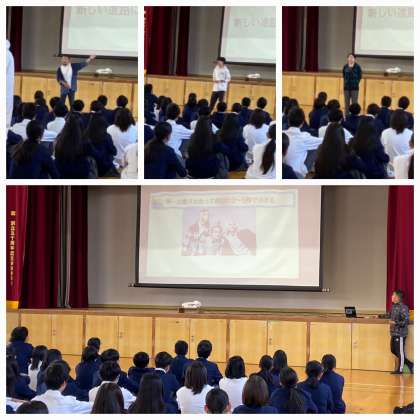 最後に、進路に向けて、第一印象を決める証明写真の撮り方についての注意事項や身だしなみの説明がありました。先生からは、「身だしなみを含め、進路についてしっかり考えてほしい。」とお話がありました。