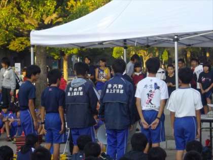 10月17日(土)大阪中学駅伝大阪市予選が長居公園で開催され、陸上部は出場しました。エース区間の1区で2年生が好位置につけ、2区3年生で流れをつくり、3区3年生、4区2年生、5区2年生が耐えしのぎ、アンカー6区3年生が着実な走りをして大阪市7位に入賞しました。以下は顧問の先生のコメントです。