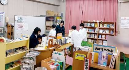 毎週、月・木・金曜日は図書館開放日です。後期生徒専門委員会の活動が始まり、図書委員会の当番生徒が図書館開放を行いました。