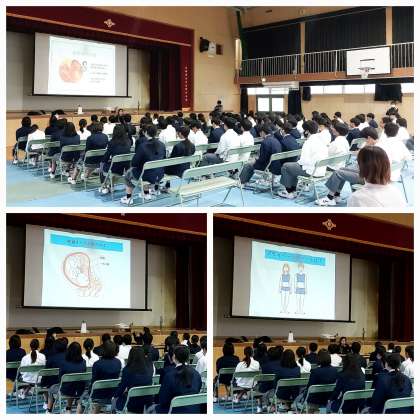 男女それぞれのからだの仕組みや思春期のからだの変化、性行為についてのお話など、心身ともに、いのちをつなぐ準備中である生徒に向け、いのちの大切さや他者と比べることなく自分自身を大切にすること、互いを認め合い大切にすることをお話していただきました。