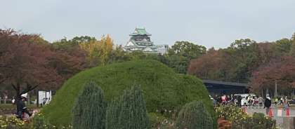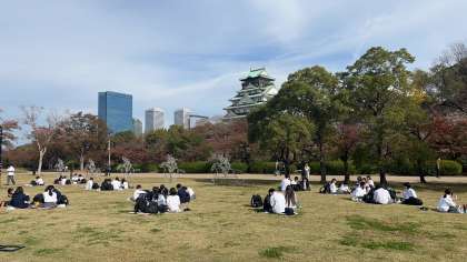 全員無事に大阪城に到着し、西の丸庭園にて昼食をとっています。