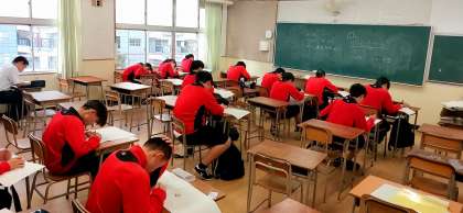 スポーツ大会で体を動かしリフレッシュした後は、学習会で頭を使い頑張っています。