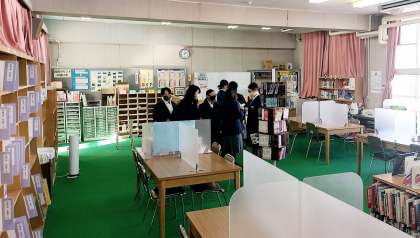 毎週月・木・金曜日は、図書館開放日です。今日の開放には、2年生の生徒がたくさん来館してくれました。1月12日(金)の英検の問題集や、リクエスト本を借りてくれる生徒が多く、活気のある図書館開放となりました。当番の図書委員さんも貸出返却作業に大忙しでした。