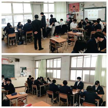 「飲食店を始めよう」と題し、班に分かれて、販売したい商品や出店場所、1日あたり何人前を目標にするかなどを決めて、1人前をいくらで販売すれば思う利益が見込めるのかを計算しました。輸入材料と国産材料のどちら用いるか、遠方まで調達に行くにはいくら資金がかかるかなど、様々なことを考えながら、作業を進めていました。