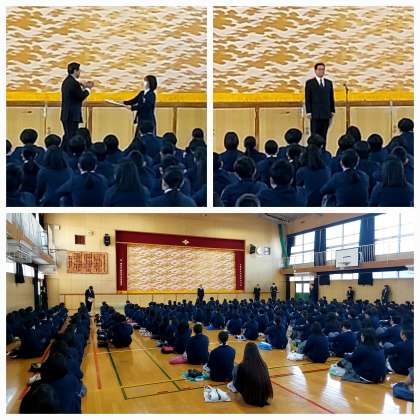 本日1月9日(火)に、3学期始業式を行いました。始業式では、表彰と下記のお話がありました。