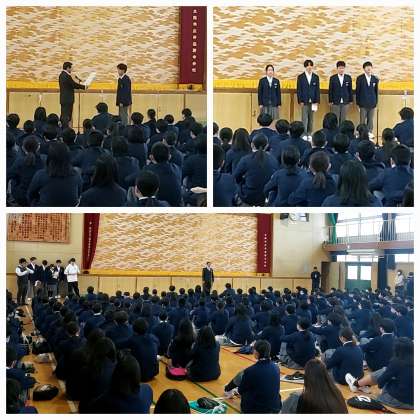 毎週月曜日は、全校集会です。本日の集会では、表彰と下記のお話がありました。