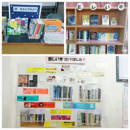図書館には新しく「詩の本」の展示が設けられ、職員室前には新しく入った本の紹介ポスターが飾られていました。入荷したばかりの新しい本も借りることが出来ますので、図書館に来た際は新刊コーナーをチェックしてみてくださいね。