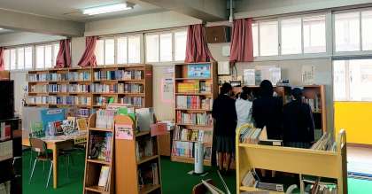 毎週月・木・金曜日は、図書館開放日です。本日の開放には、当番生徒が友人と一緒に訪れてくれました。1冊の本について、みんなで楽しそうに話をしていました。とても微笑ましい一時でした。