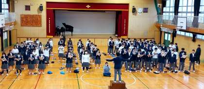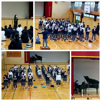 本番同様、指揮者の合図と伴奏に合わせ練習を行いました。体育館中に澄んだ歌声が響き渡っていました。