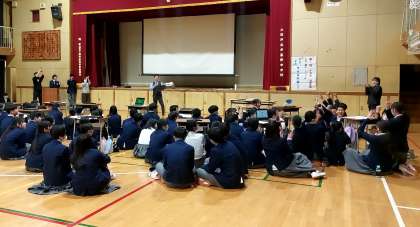 最後に、班ごとの上位3班と、総合優勝が発表されました。表彰は、次回の学年集会で行います。公立特別選抜の合格発表、公立一般入試をひかえる3年生ではありますが、学年全体の楽しい行事となりました。卒業式まで残り11日です。50期生らしく、最後まで明るく過ごしましょうと、結びのお話がありました。