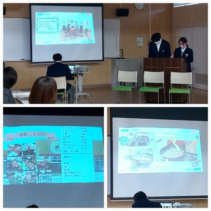 発表を聞いてくださった皆さんからは、「改めて自分の食事を見直す機会になった。」「生徒自身が作れるレシピを紹介してくれているのが良い。」などの感想をいただきました。