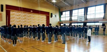 〇本日6時間目に、修学旅行事前指導を行います。以前みなさんに事前学習をして、スライド発表をしてもらいましたが、本日は現時点で決まっている沖縄での活動について説明をします。交通機関等の関係で変更になる可能性もありますが、スクリーンを使って説明をしますので、6時間目が始まるまでに各自で体育館に集合してください。
