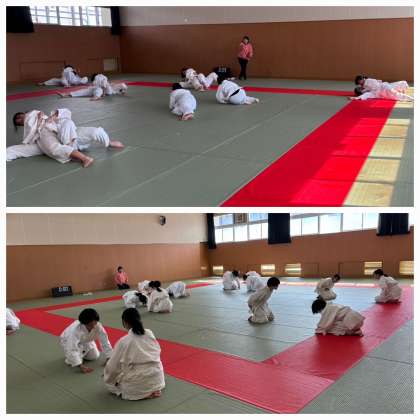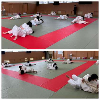 本日5時間目の1年生女子保健体育の授業は、柔道でした。武道は中学校保健体育の必修科目となっています。1年生では、基本動作や基礎的な対人的技能を身に付け、自由練習や簡易な試合ができるようにすることと同時に、礼儀正しい態度を覚え、安全に留意して練習や試合ができるようにすることを目標としています。