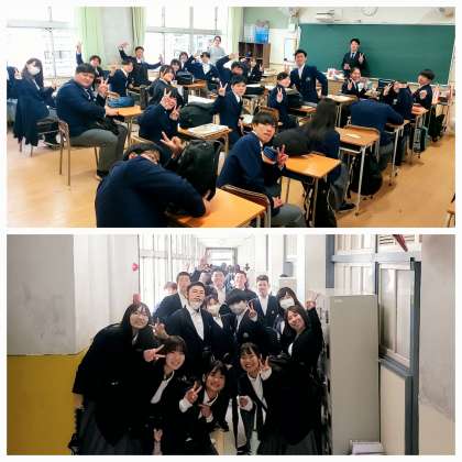 本日1時間目より卒業式の予行を行い、その後各教室で学活を行いました。写真は、学活後の各クラスの様子です。明日はいよいよ、50期生の卒業式です。
