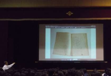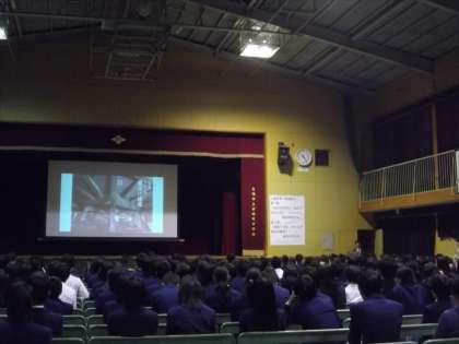 10月31日(土)土曜授業で人権講演会を開催しました。講演会第一部では9歳の時広島で被爆された飯田清和さんから、ご自身が体験された貴重なお話を聴かせていただきました。講演会第二部では、東淀川区役所が区内に残る戦争の傷跡やお年寄りから聞き取った話をもとに編集した「戦後70年 わたしの東淀川遺産」について区役所の職員の方からお話していただきました。