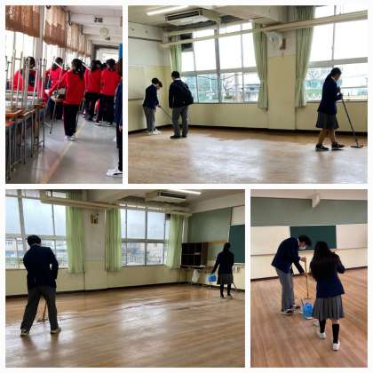 本日、年度末の大掃除と油引きを行いました。1年間過ごした教室や、校舎を隅々まで綺麗にしてくれていました。気温が低くなり水が冷たくなっていましたが、換気扇やエアコンのフィルターまで丁寧に洗ってくれていました。みなさんのおかげで、学校中がピカピカになりました。ありがとうございました!