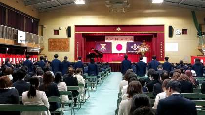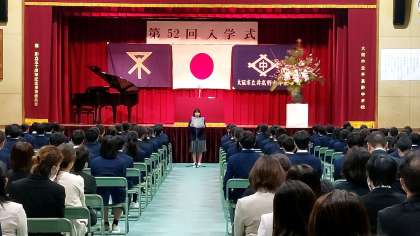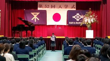 在校生代表生徒が歓迎のことばを述べ、新入生代表生徒が喜びのことばを述べました。