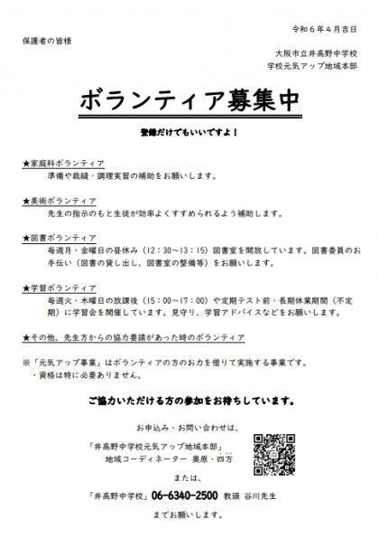 また、あわせてボランティアさんも募集しています。ご興味のある方は、ぜひご連絡ください。