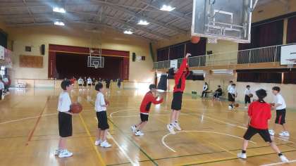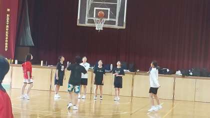 写真は、男子バスケットボール部と女子バスケットボール部の様子です。
