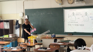 2年生の授業では水素爆発を体験しました。花火の技術の基礎になっているのは科学だと言う話から爆発を体験してみようという授業でした。