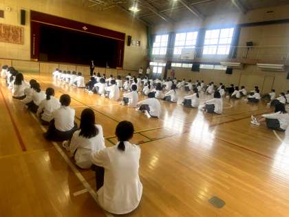 体育大会のスローガンは『ONE TEAM ONE DREAM 〜今しかないこの時を全力で〜』です。みんなが力を合わせて全力で取り組めば、人に感動を与えることができます。一人一人が主役であり、責任者である自覚を持って、体育大会を成功させてください。2年生は「今しかない」のです。
