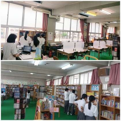 本日の開放にも、多くの生徒が来館してくれていました。図書委員会の生徒が貸出カウンターでの手続きや、書架の整理をしてくれていました。