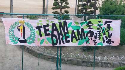 本日、中庭に美術部が作成した体育大会の横断幕げ飾られました。色鮮やかな横断幕には、今年度の体育大会のスローガン『ONE TEAM ONE DREAM 〜今しかないこの時を全力で〜』の文字がかかれています。体育大会まで残り1週間、みんなの気持ちを一つにして、素晴らしい体育大会にしましょう!