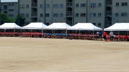 本日は、体育大会予行練習です。2時間目から4時間目の3時間で、係の動きや競技の進行確認をします。本番さながらに、みんな真剣に取り組んでいます。