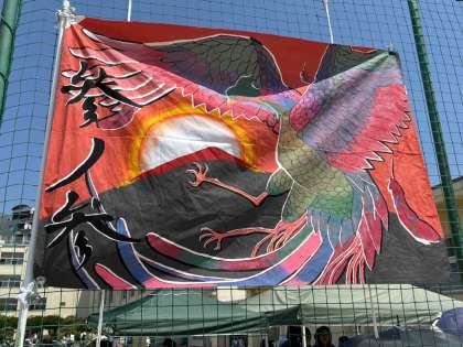 3年生の学級旗です。上から順に3年1組、3年2組、3年3組の作品です。