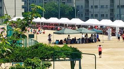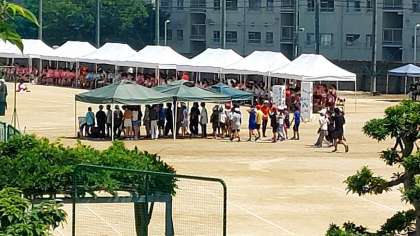小中連携として、午前には井高野小学校の6年生が、午後には東井高野小学校の6年生が体育大会の観戦に来てくれています。