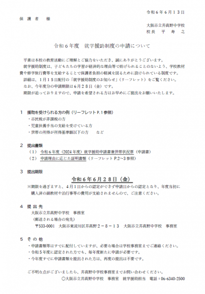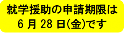 令和6年度の就学援助申請は、令和6年6月28日(金)が最終締切日です。