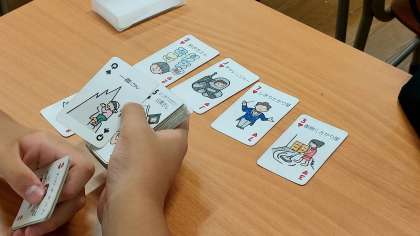 本日7月2日(火)に、講師の先生にお越しいただき、1年生を対象にキャリア学習の一環として「SPトランプ」授業を行いました。SPとは、「Sub Personality(サブパーソナリティ)」の略で、個性や人格を表します。特によく見られる52の個性がかかれたトランプから、自分の性格にあった10枚のカードを選び、ワークシートを用いて自身の個性や強み、向いている仕事やコミュニケーション方法を学びます。