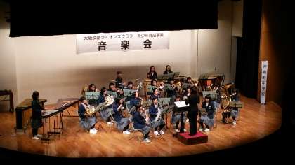 11月22日(日)大阪淡路ライオンズクラブ主催の音楽会が、大阪経済大学70周年記念館で開催されました。井高野中学校の吹奏楽部は「勇気100% Brass Rock」「LIFE〜目の前の向こうへ〜」「なんでもねだり」の3曲を演奏しました。3年生が引退して3週間あまりですが、人数が少なくなりましたが力強いしっかりして演奏ができるようになってきました。音楽会のフィナーレは、参加した中・高・大学生で結成したフェスティバルバンドが「炎と森のカーニバル」を演奏して終演となりました。お世話いただいた大阪淡路ライオンズクラブ、大阪経済大学の皆さまにお礼申しあげます。