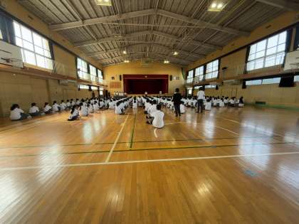 まだ、鞄をもって集会に来ている生徒が居てたので、改めて時間をしっかり守りましょう。