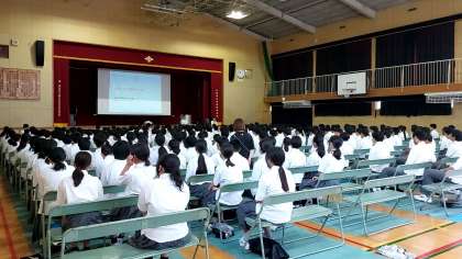 本日4時間目に、梅田少年サポートセンターから講師の先生にお越しいただき、全校生徒を対象に健全育成非行防止教育を行いました。「安全にSNSを使うために」と題し、実際に大阪府で起こっている事件や事案を交えながらお話してくださいました。